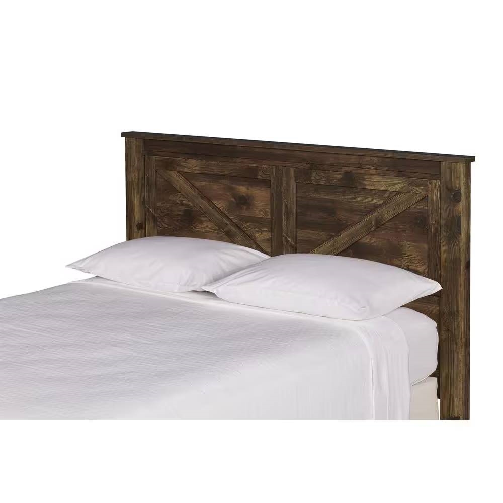 Queen size Farmhouse Style Headboard in Rustic Brown Wood Finish