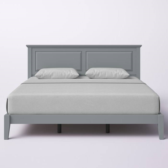 This King Size Retro Solid Oak Wooden Platform Bed in Grey with prominent headboard is a must have for any bedroom! Inset panels and retro molding that adds refined elegance to any bedroom or guest room. It is crafted from solid oak, a naturally hard and durable wood. Platform bed sits on straight and slightly tapered legs that raise this bed almost 8 inches off the floor. This system of slats eliminates the need for a box spring and works best with any standard mattress (recommended 10 inches of thickness). Assembly is required.
