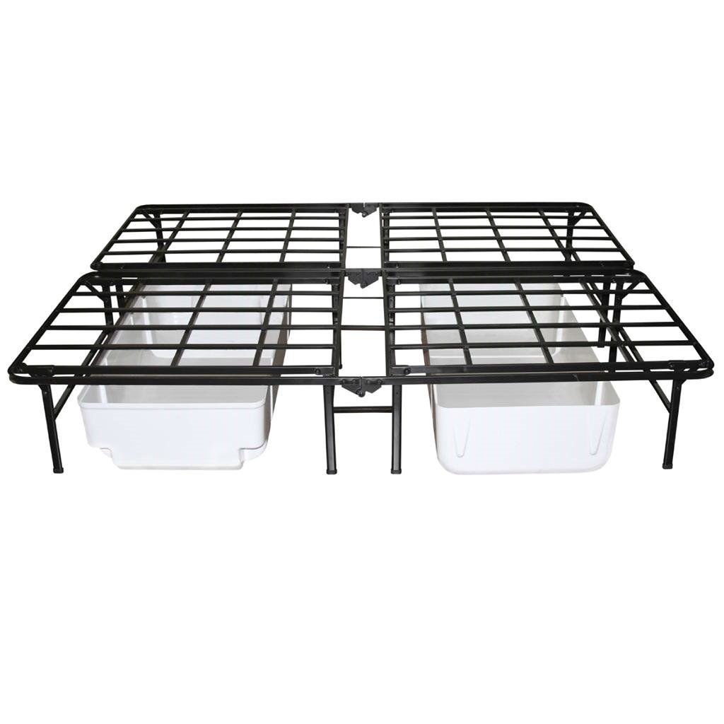This Queen size Heavy Duty Metal Platform Bed Frame - Supports up to 4,400 lbs is the latest innovation from Sleep Master. We have increased the support to hold up to 4400 lbs. The increased support, portability, quick setup and 14" underbed storage space makes this a perfect solution for your mattress foundation. There are no-tools required to assemble the frame making it easy to put together and take down for easy storage. Perfect for innerspring, latex and memory foam mattresses.
