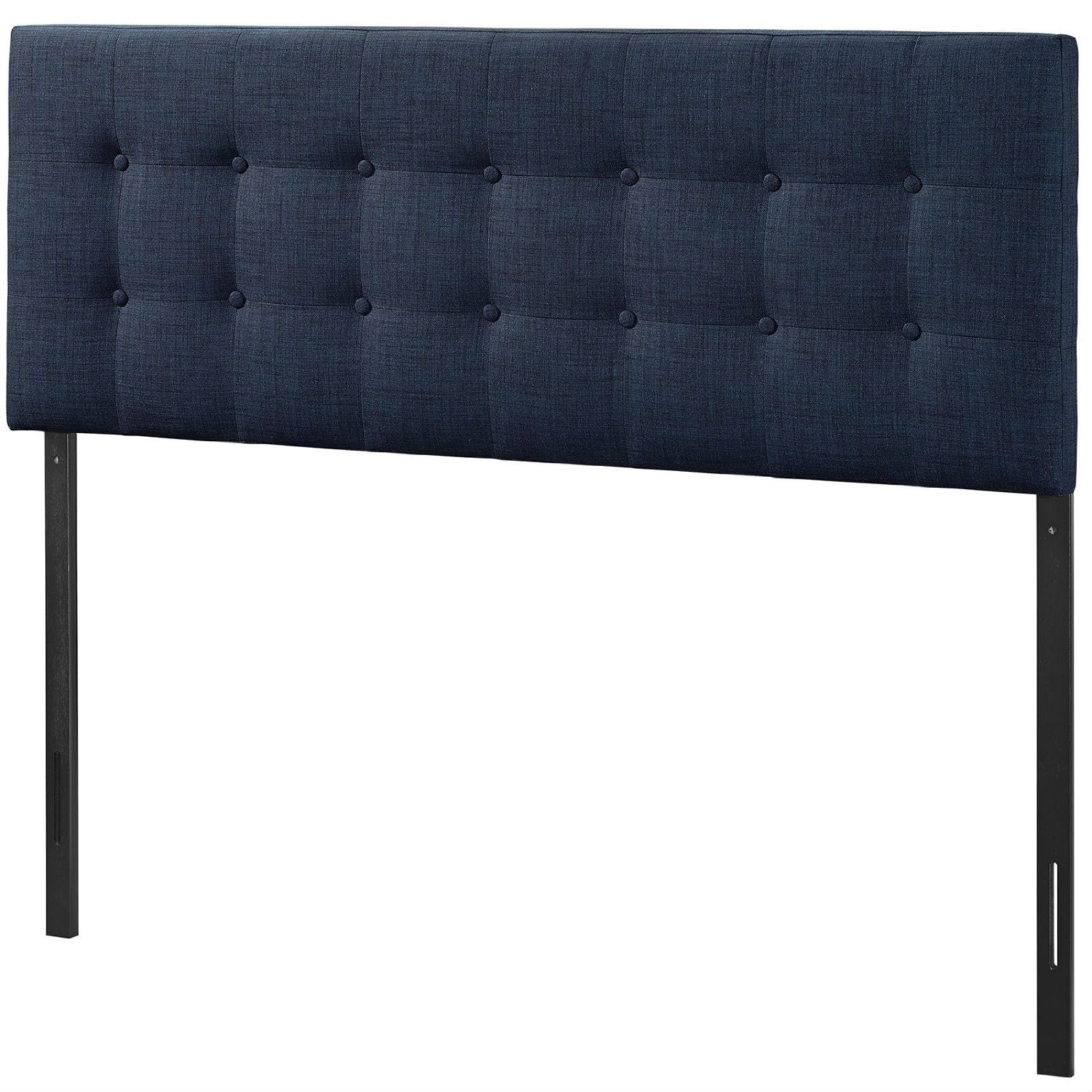 Add elegance to your bedroom with this Full size Navy Fabric Modern Upholstered Headboard. Designed with just the right amount of grace, Emily is made from fiberboard, plywood, and fine polyester upholstering for a construction that is both lightweight and long-lasting. Perfect for contemporary and modern bedrooms, sleep soundly with a piece that imparts a sense of tranquility amidst an impressive backdrop of style. Fits full size beds. Set Includes: One - Full Headboard Product Dimensions: Overall Product Dimensions: 3.5"L x 56"W x 45 - 52.5"H Floor to bottom of Headboard: 23 - 30.5"H.